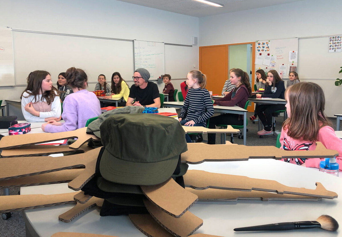 Aus dem Unterricht wurde eine spannende und intensive Projektarbeit, welche von Recherchieren, Crowdfunding, Interviews führen und geben bis hin zur finalen Präsentation vor Publikum reichte. Die Vorbereitung und Umsetzung des Videoclips war die größte Herausforderung. Falco führte neben der Arbeit mit den Schülern stundenlange Gespräche mit verschiedenen Organisationen um sein eigenes Bild zur zu verschaffen. Die Zahlen und Fakten waren einfach erschreckend! Er interviewte einige Opfer sowie Täter, pädophile Frauen wie Männer, Anwälte, Psychologen und Polizisten. Er tauchte immer tiefer in die dunkle Materie bis hin zum Kinderhandel und Kinderpornografie ein um das Drehbuch zu schreiben. Schauspieler Harald Krassnitzer (Tatort, spielt im Clip die Rolle des Vaters) verlieh dem Ganzen durch seine unglaubliche Erfahrung den Feinschliff und stand Falco zur Seite als Co Regisseur. Durch die vielen Gespräche wurde allen immer bewusster, wie nah, komplex und vor allem verbreitet physische, psychische und sexuelle Gewalt ist. Von der Straße bis hinauf zur höchsten, politischen Chefetage. Es reichte vom eigenen zuhause bis hinaus über den gesamten Globus. Es flossen so einige Tränen und das heftige Thema ging ein jedem sehr unter die Haut und Falco fing an, die Schüler von der zu dunklen Materie abzuschirmen. Es ging ja nicht um irgendeine Geschichte, das war unsere Welt, unsere Gesellschaft, unser persönliches Umfeld, die Realität. Der Dreh war sehr emotional für alle Beteiligten.